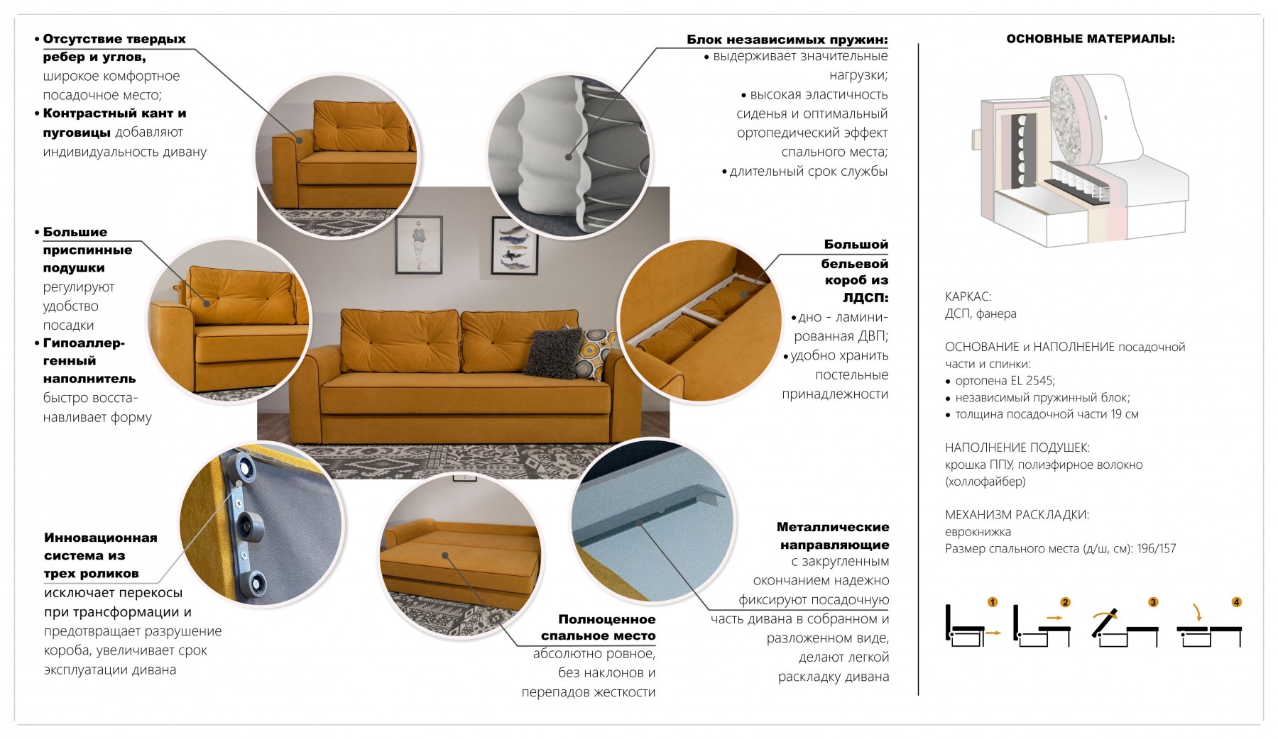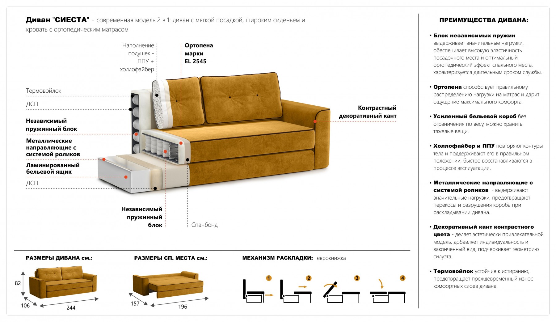 Механизм раскладки: Еврокнижка. Спальное место: 1450х2700 мм.