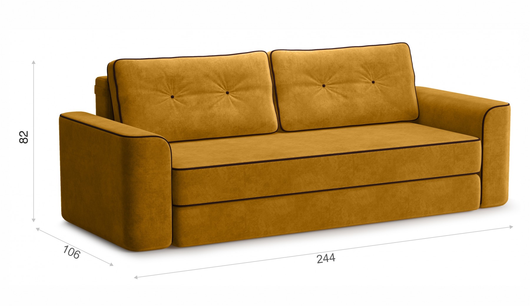 Габариты (ШхГхВ): 213х105х83 см (можно изменить). Обивка: ткань, экокожа, натуральная кожа. Более 1000 вариантов цвета.