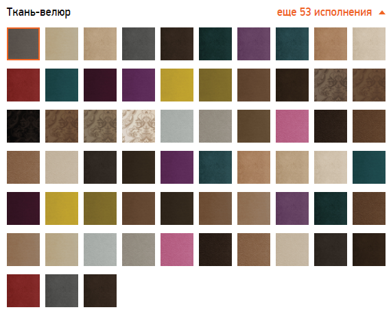 Обивка выполнена из велюра, который является одним из лучших обивочных материалов для мягкой мебели. С одной стороны это эстетичная и очень приятная на ощупь ткань, а с другой она прочная, долговечная и простая в уходе. Широкий ассортимент цветовых решений, как классических, так и ярких и необычных, позволит вам найти вариант для любого интерьера.
