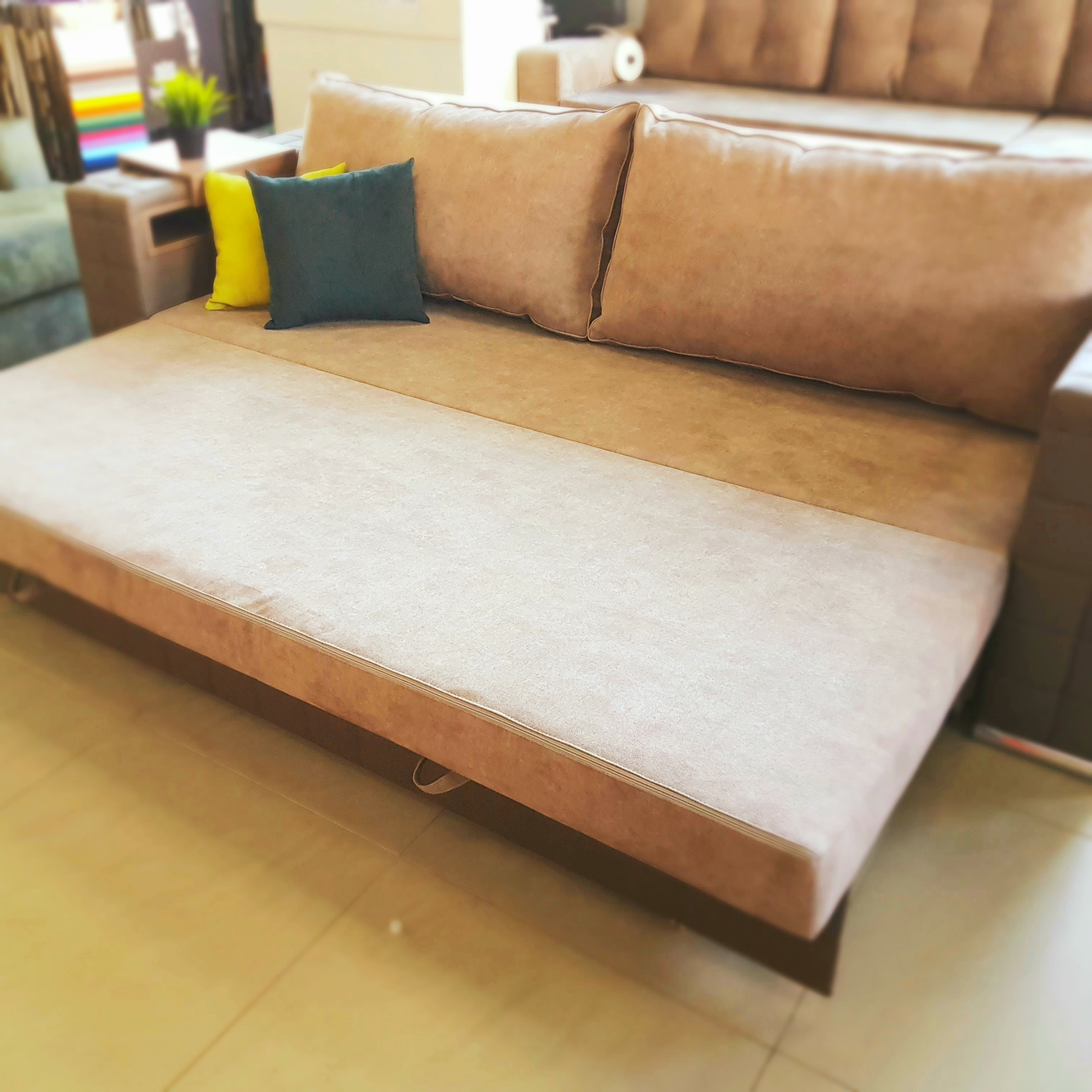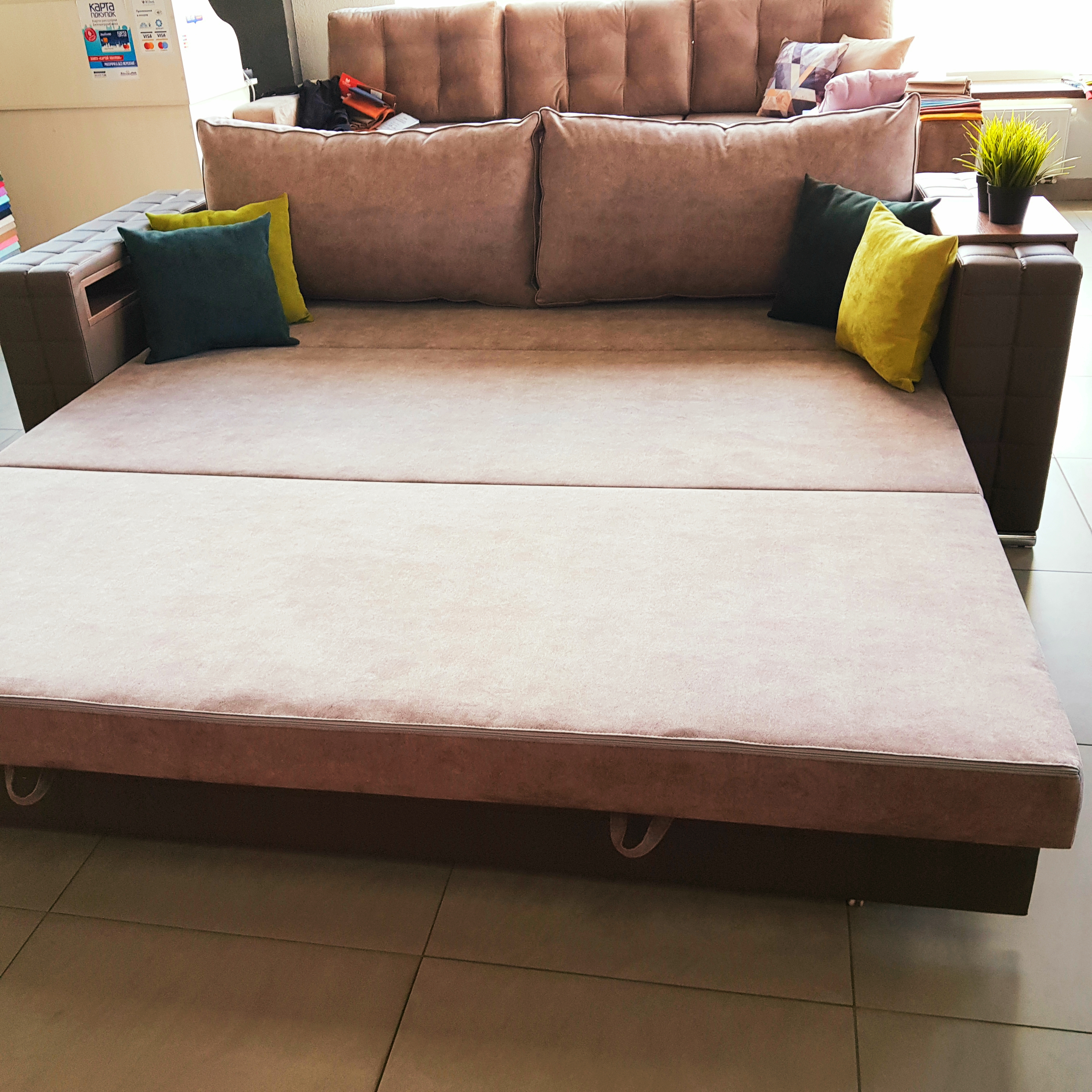 Двойная раскладка: можно спать вдоль стены (спальное место будет 200х150 см) и полная раскладка вперед - 200х215 см.