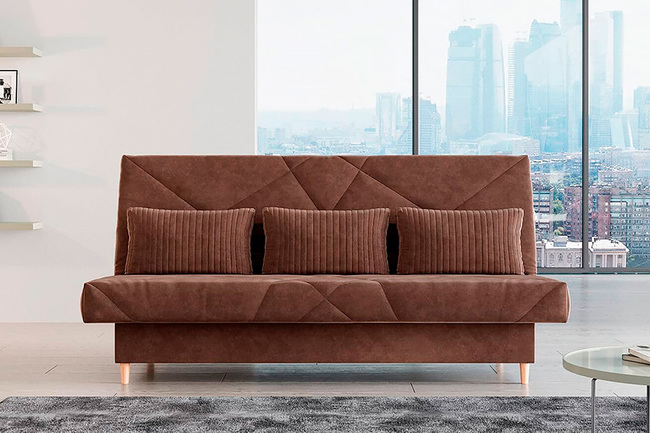 - задняя спинка – из обивочного материала, диван подходит для зонирования пространства в квартирах-студиях.