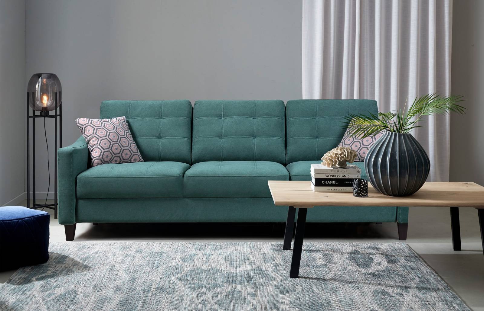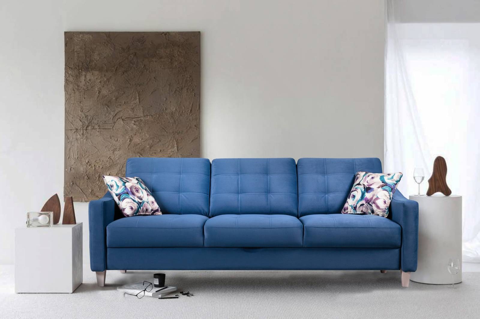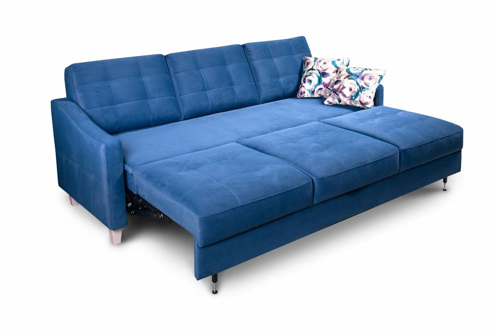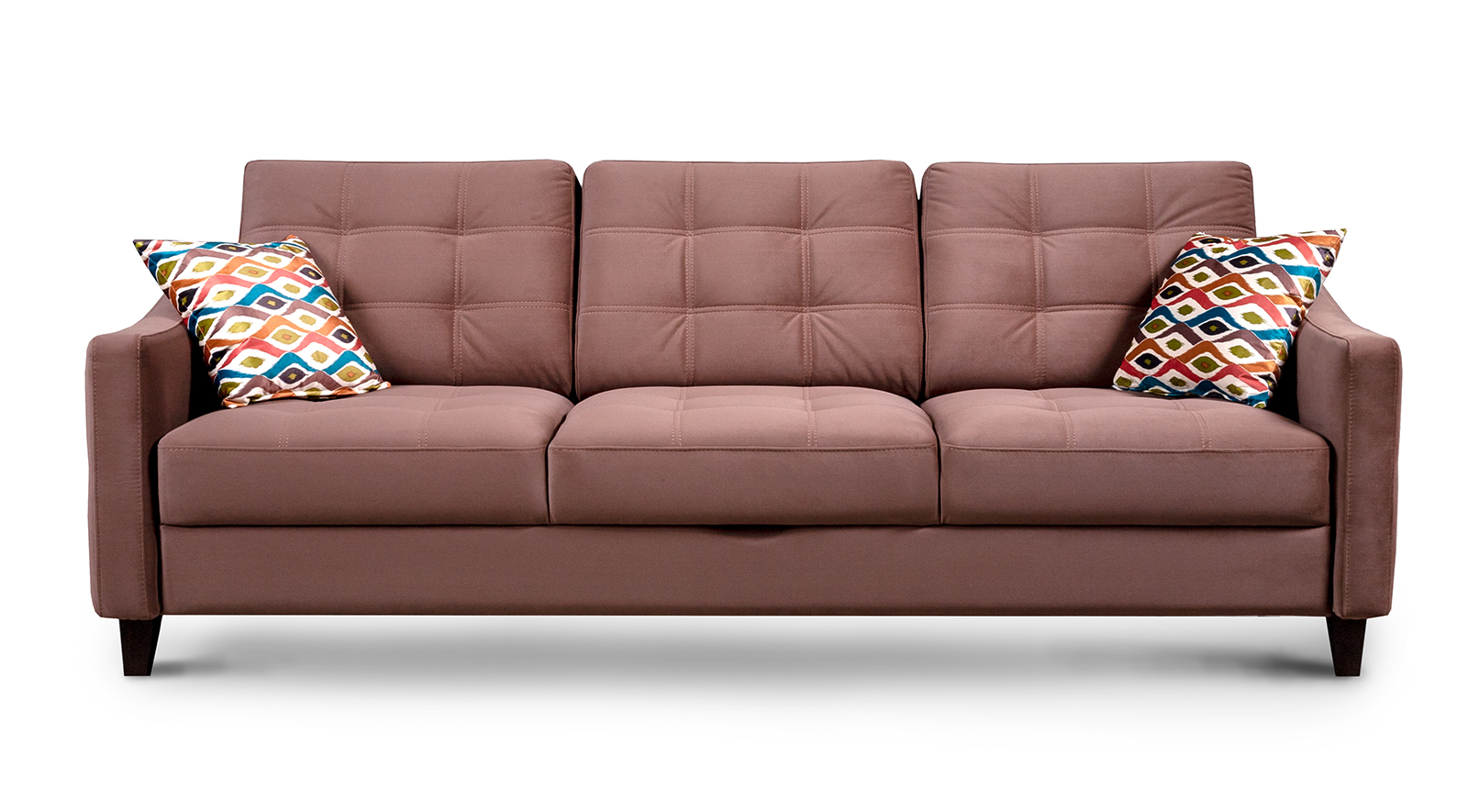 Диван оснащен механизмом раскладки и вместительным ящиком для белья.
