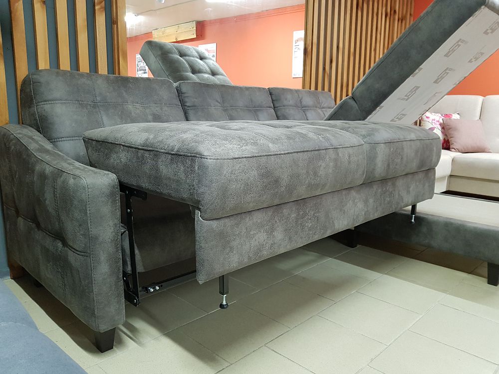 Надёжный механизм трансформации спального места «Пума» подходит для ежедневного использования. Задняя стенка дивана облицована основной тканью. Модельный ряд «Тофи» включает в себя диван-кровать угловой, диван линейный, диван-кровать линейный, кресло и пуф.