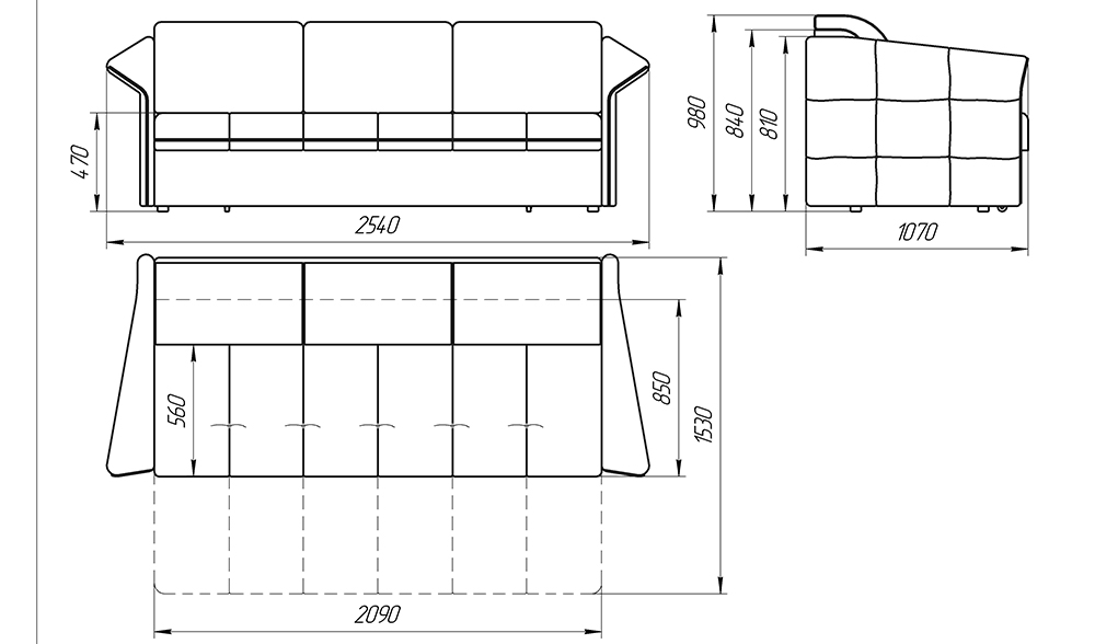Габариты (ДхГхВ): 258х88х104 см. Пружинный блок. Механизм: пума.