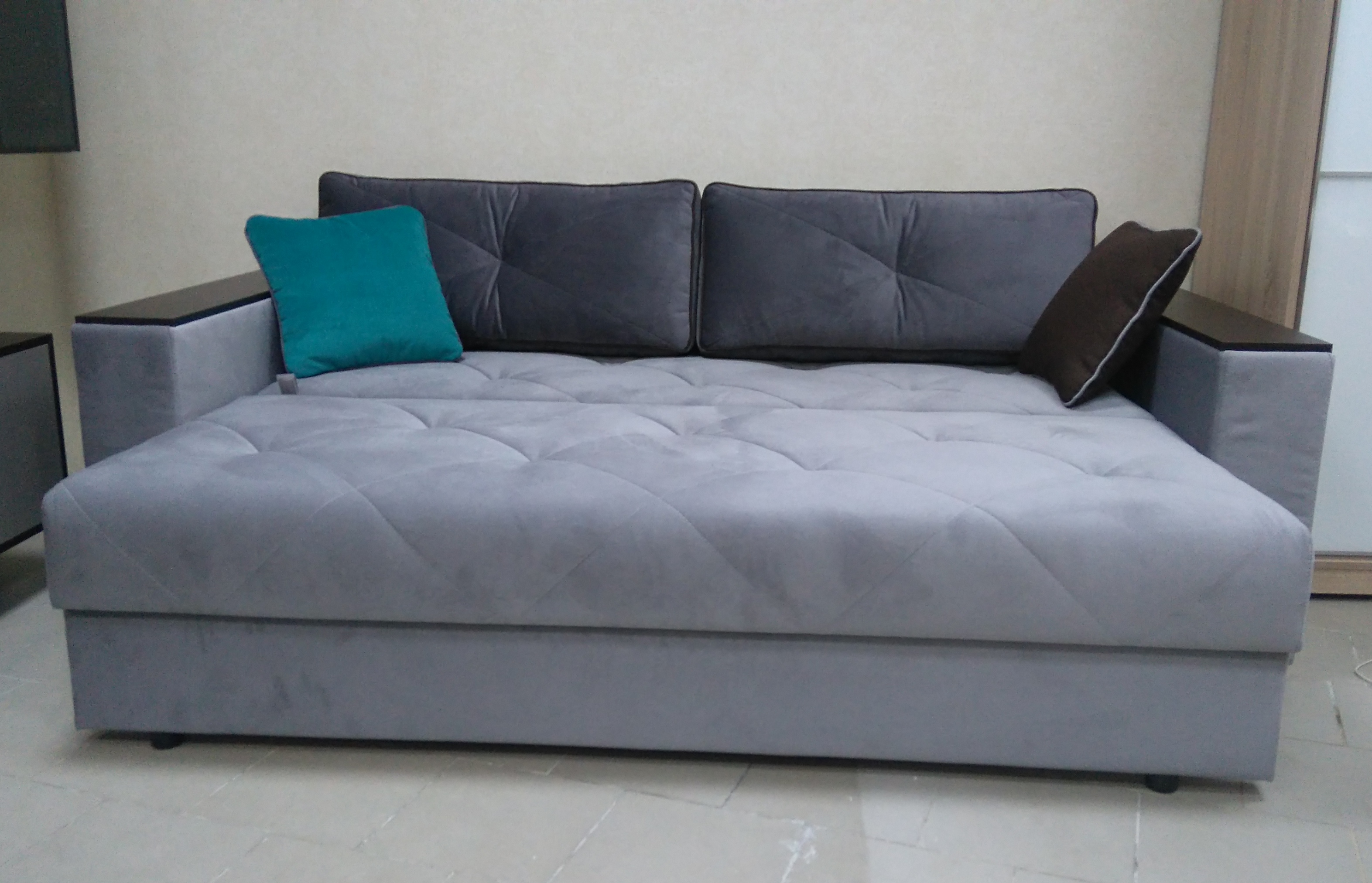 Удобная, простая модель, с большим спальным местом. В комплект входят 2 декоративные подушки.