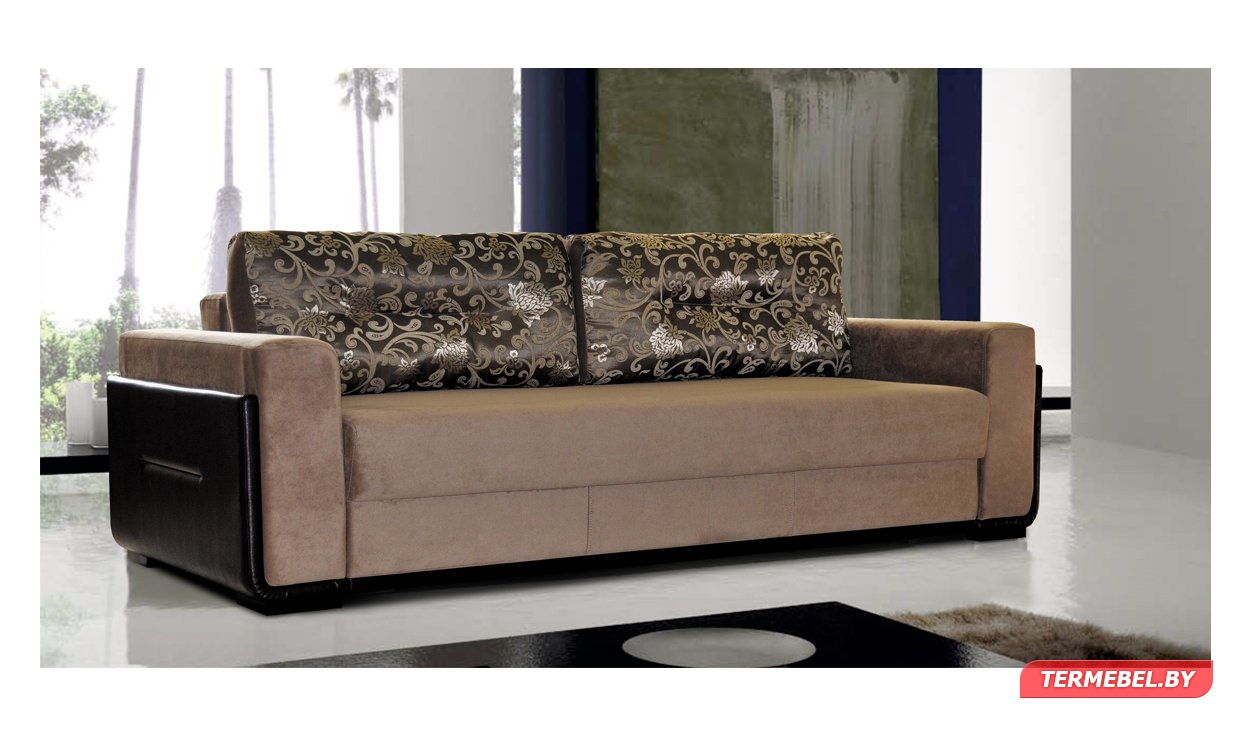 Образец сдержанной элегантности и современного стиля. Спинка из подушек. Материал обшивки легко поддается чистке. Оптимальное соотношение цена-качество. Имеется ящик для хранения постельного белья. Варианты обивки: искусственная замша, искусственная кожа, экокожа, флок, шенилл, рогожка, велюр, жаккард и др.