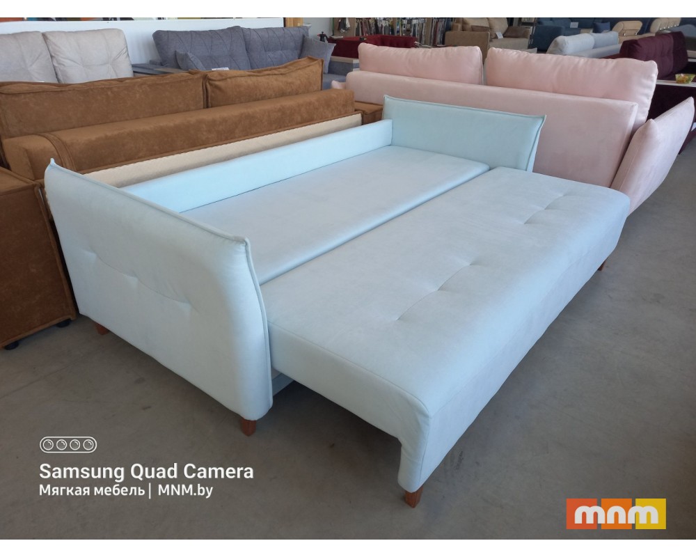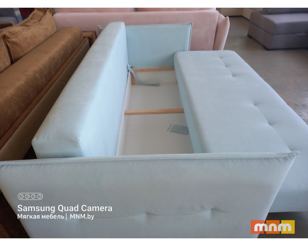 Наличие ящика для белья. Тонкие подлокотники. Удобный механизм трансформации.