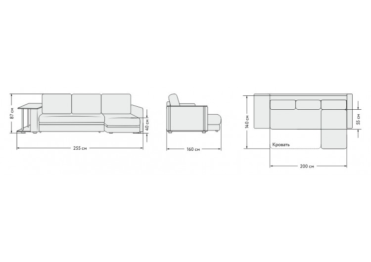 Механизм раскладки: Еврокнижка. Спальное место: 1450х1960 мм. Столик