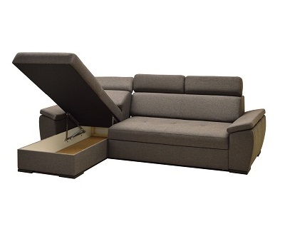 Диван угловой «Блэкберри» в тканевой обивке изготовлен с соответствии с современным дизайном. Характерной чертой дивана являются подушки подлокотников, которые располагаются не прямо, а под углом. Подголовники на спинке могут регулироваться для удобства. В подъемной части присутствуют ящики для хранения постельного белья. Наполнитель из надежных пружин-змеек и ППУ. Ящик для белья: есть, только в подъемной части.