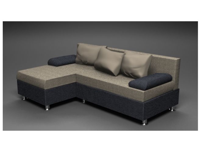 Хромированные опоры, большое спальное место, спинки-подушки, бельевой ящик.