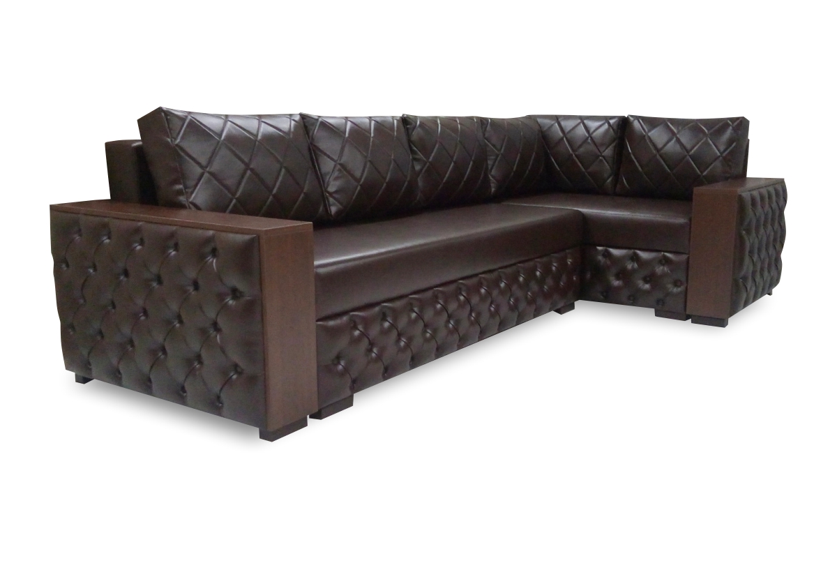 Диван угловой «Элит» обтянут приятной обивкой, которая дополнительно декорирована стяжкой. Посредством механизма трансформации еврокнижка, диван легко превращается в уютное спальное место для гостей или ежедневного личного использования. Сидение наполнено эластичным пенополиуретаном, что делает отдых на диване еще более комфортным.