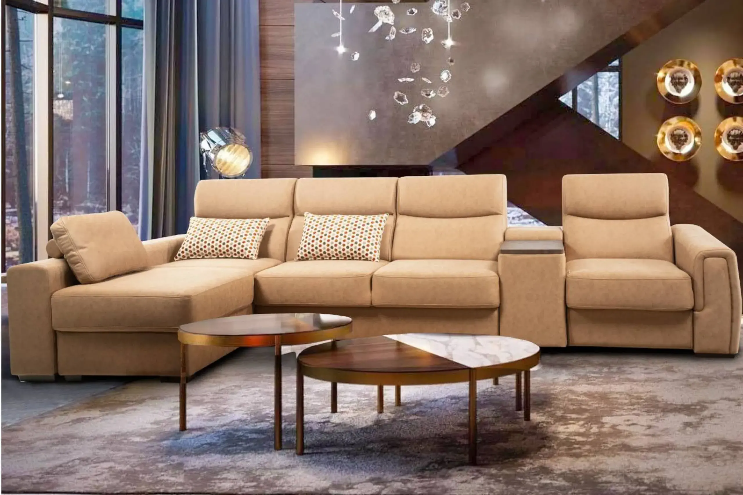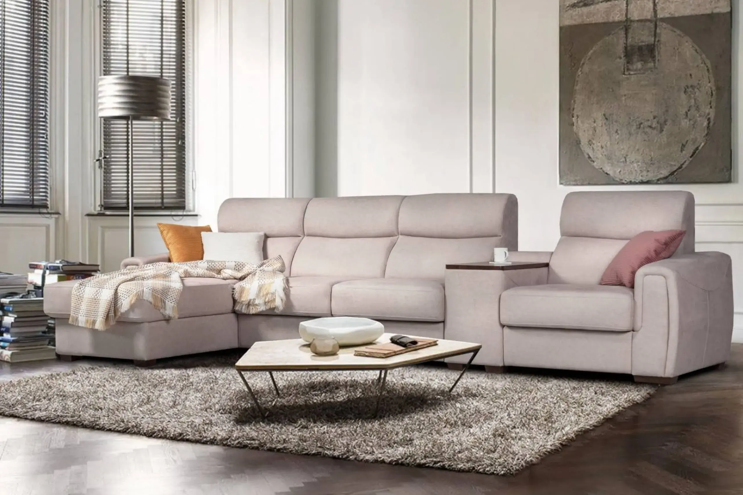Модульный диван с индивидуальной конфигурацией для гибкой планировки.