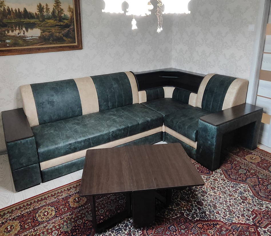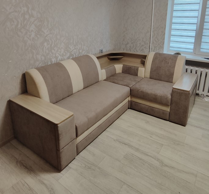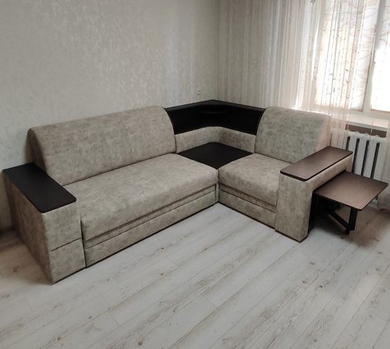 Диван угловой «Лукас» с баром мобильным столиком и ящиками