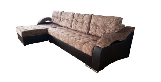 Ящики в подлокотниках и столик. Настил: ортопедические латы + ППУ.