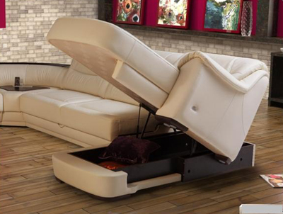 Угловой модульный диван «Калинка» может быть сконструирован под любые размеры. Отличительная особенность представленного образца – возможность регулирования высоты спинки.