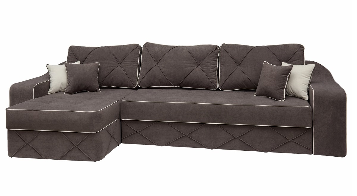 Диван угловой «Нежность» (4 подушки, кант) Omega 17, кант Omega 30