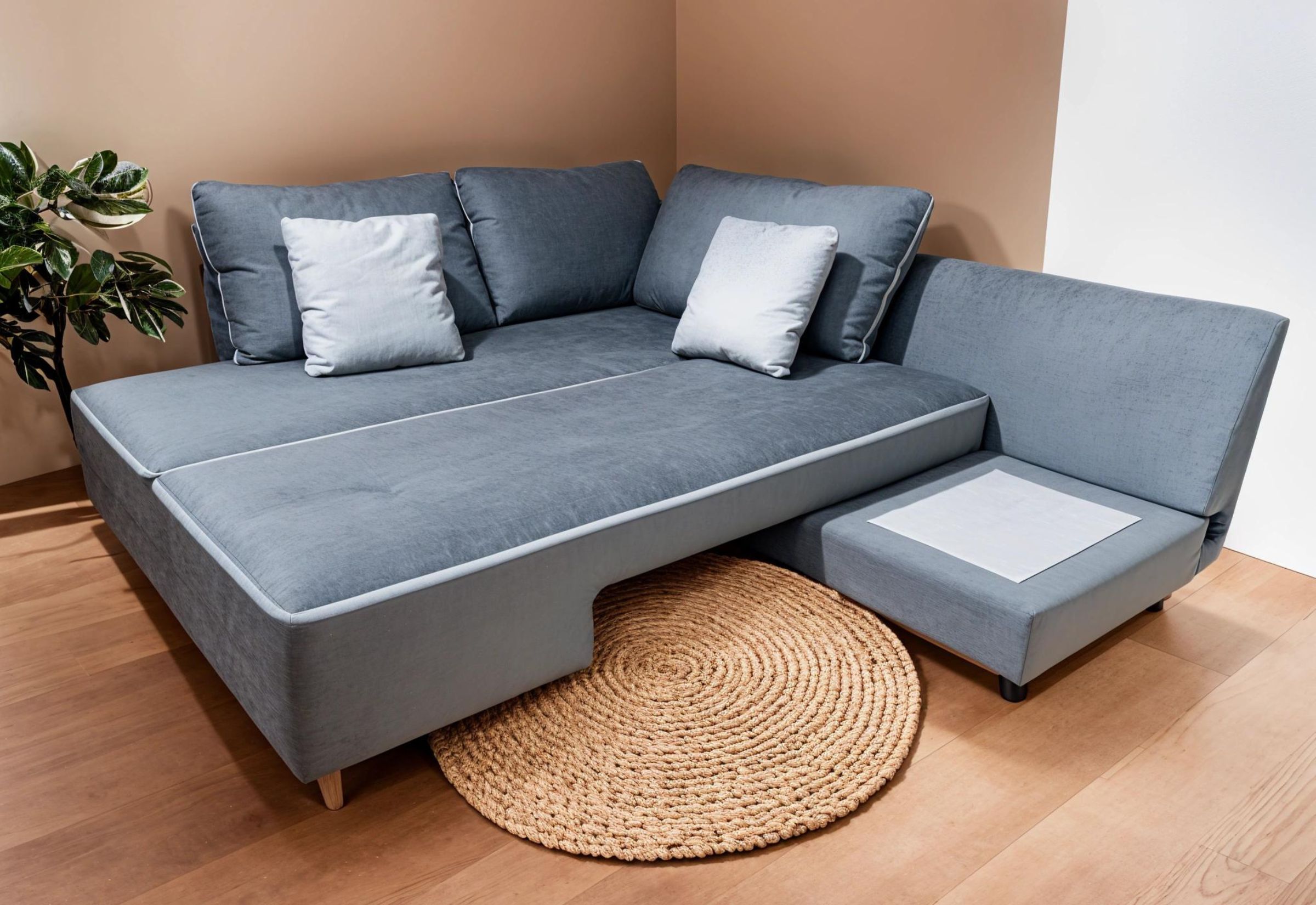 «Ножницы» Этот вид трансформации диванов по принципу работы напоминает ножницы, отсюда и произошло название. Поворотный механизм просто и быстро превращает угловой диван в двуспальную кровать поворотом сиденья подвижной части на 90 градусов в сторону неподвижно стоящей.