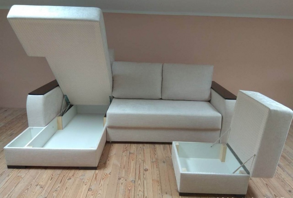 В подлокотники диванов добавлены кармашки для хранение разных мелочей.