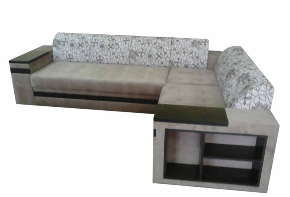 Большой угловой диван в бежевом цвете. Накладка на подлокотнике. Ящик для белья.