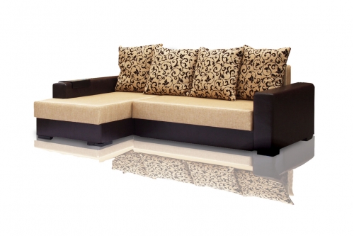 Габаритный и вместительный угловой диван «Принцесса» имеет функцию раскладывания до полного спального места на двоих человек. Широкие подлокотники оснащены сбоку открытыми полочками для книг и элементов декора. Обивка дивана выполнена в комбинированном цвете: сером и холодном бежевом.