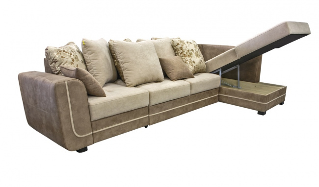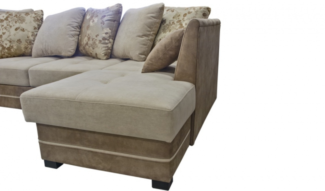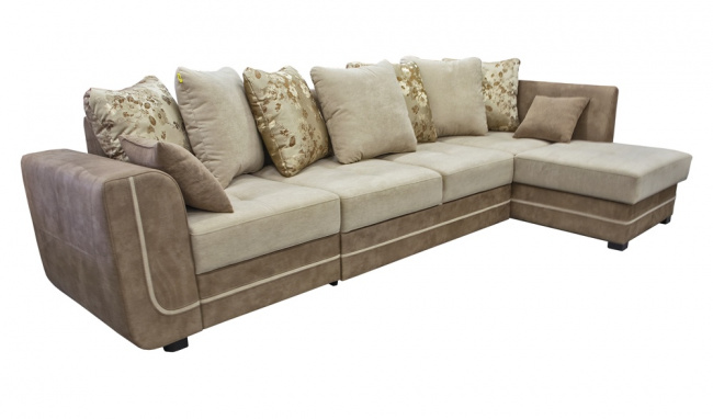 Это удлиненный Дельфин 3 для большой гостиной, длина составляет 300 см спальное место 193×137 см. Сочетание разнообразных фактур и материалов не оставят вас равнодушными. А большая гостиная уже не будет такой пустой.