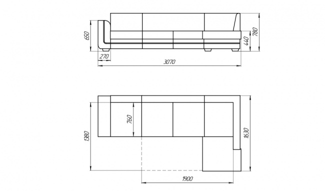 Габаритные размеры: 307 см x 163 см x 78 см.