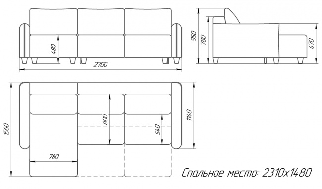 Габаритные размеры: 270 см x 156 см x 95 см.