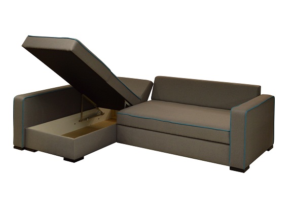Стильный угловой диван «Валенсия» 1 оформлен в лаконичном дизайне с использованием в тканевой обивке светло-коричневого цвета. Цветные полосы по краям дивана подушек создают иллюзию объемности дивана, а а также выделяют его структурные части. Подлокотники прямые, со слегка закругленными углами. Ящик для постельного белья и одежды предусмотрен в подъемной части дивана.