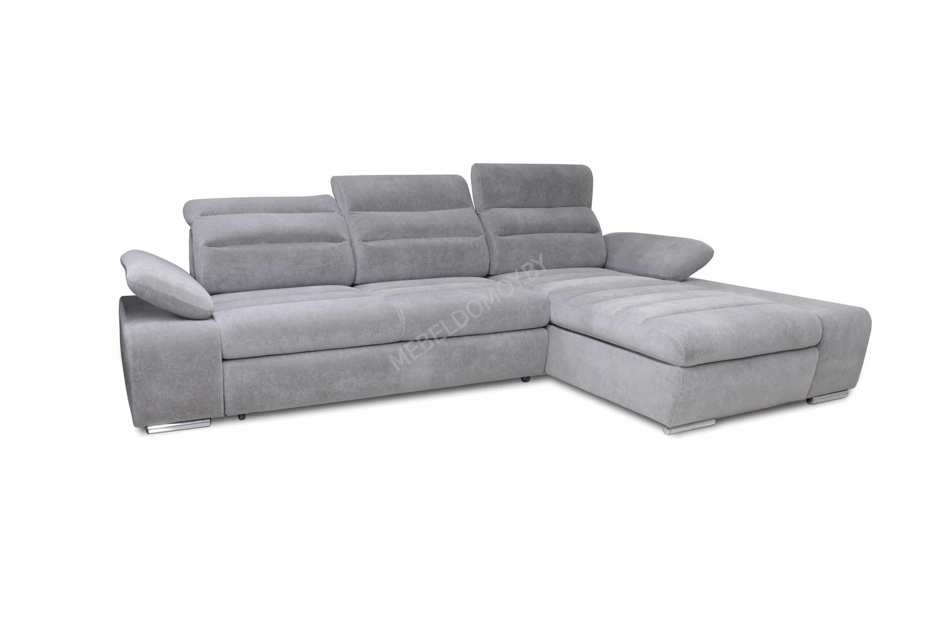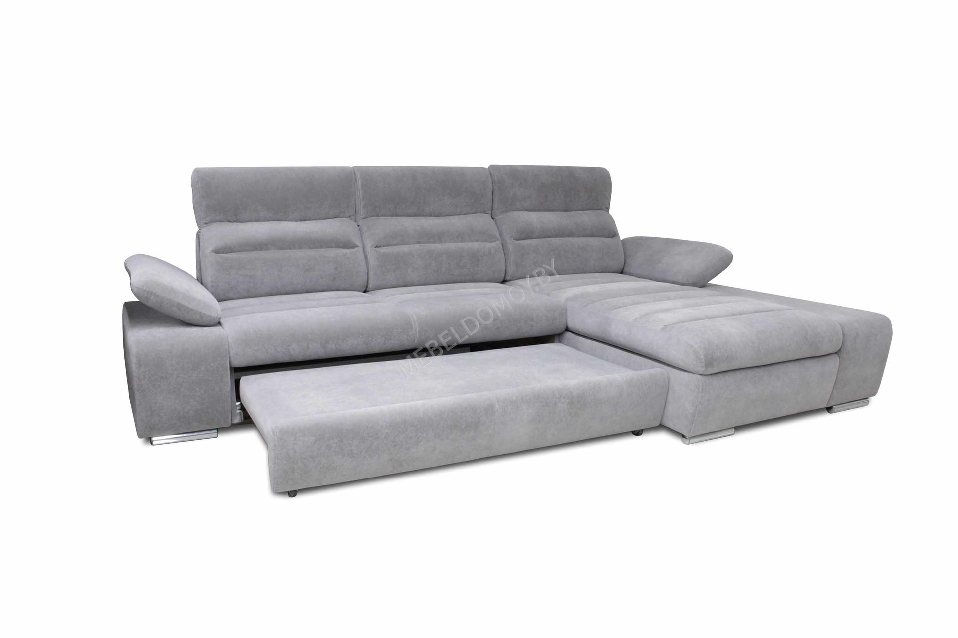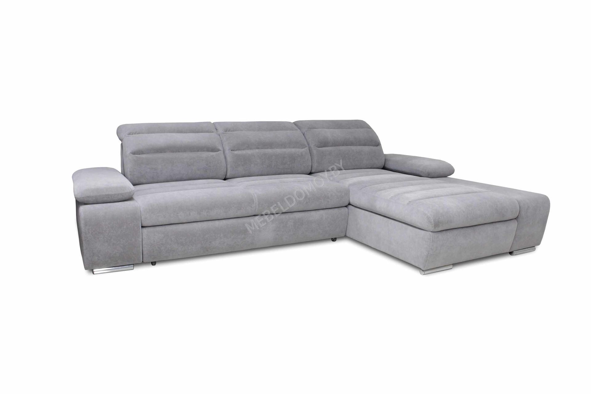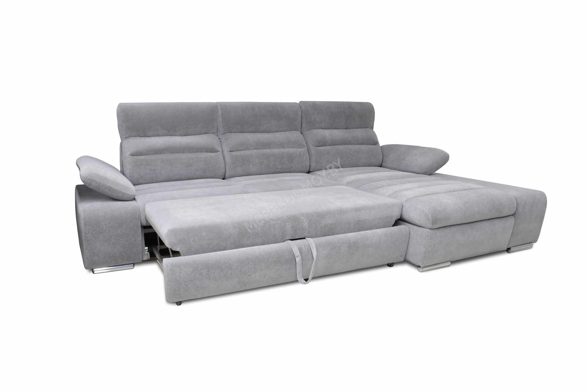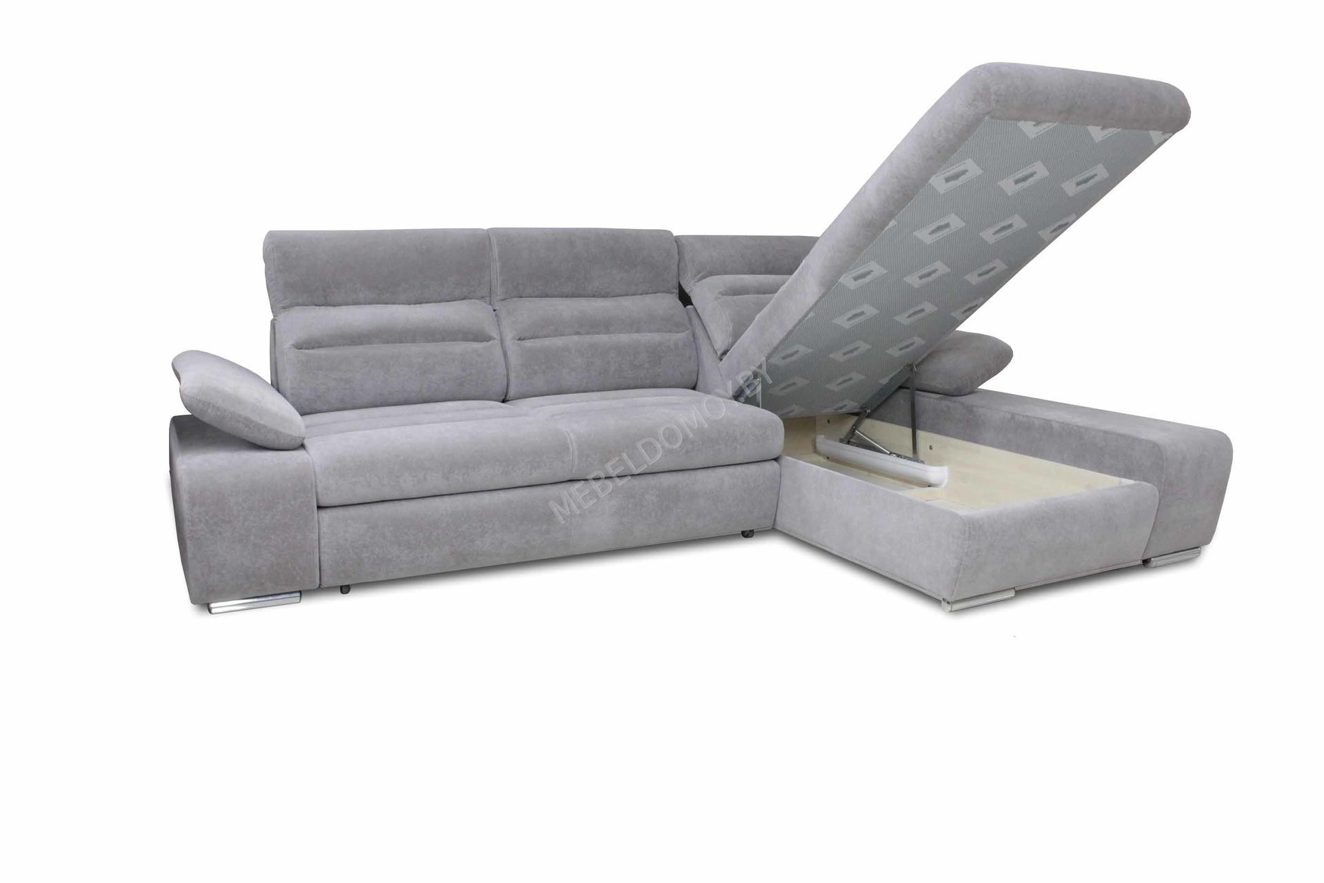 Хромированные опоры, большое спальное место, спинки-подушки, бельевой ящик.