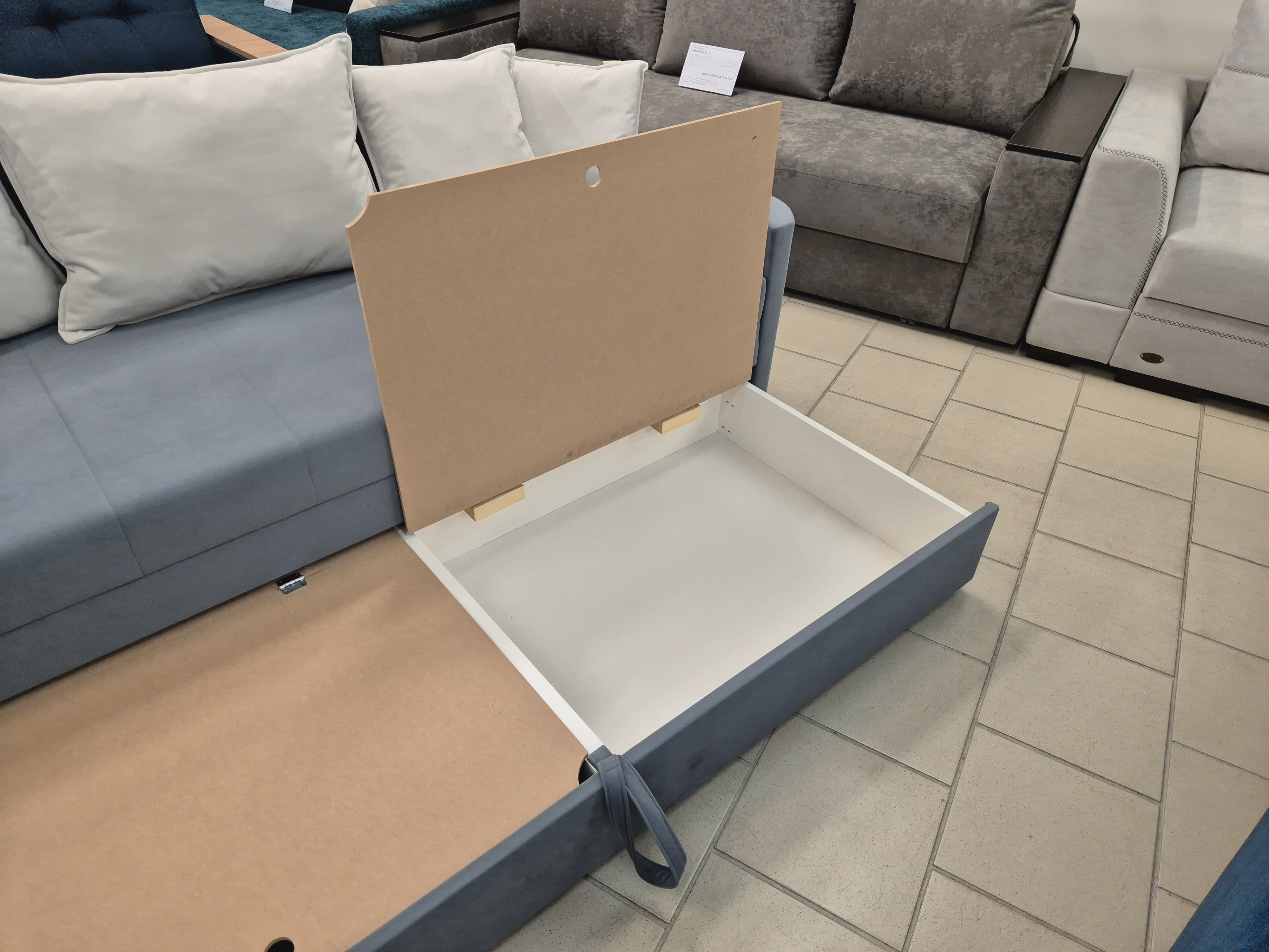 В разложенном виде представляет удобную 2-х спальную кровать.Сидение и спинка на основе высокоплотного пенополиуретана. Имеется емкость для постельных принадлежностей. В комплект входят 5 подушек спинки. Может изготавливаться в разных цветовых решениях. Механизм трансформации – «перекидной».