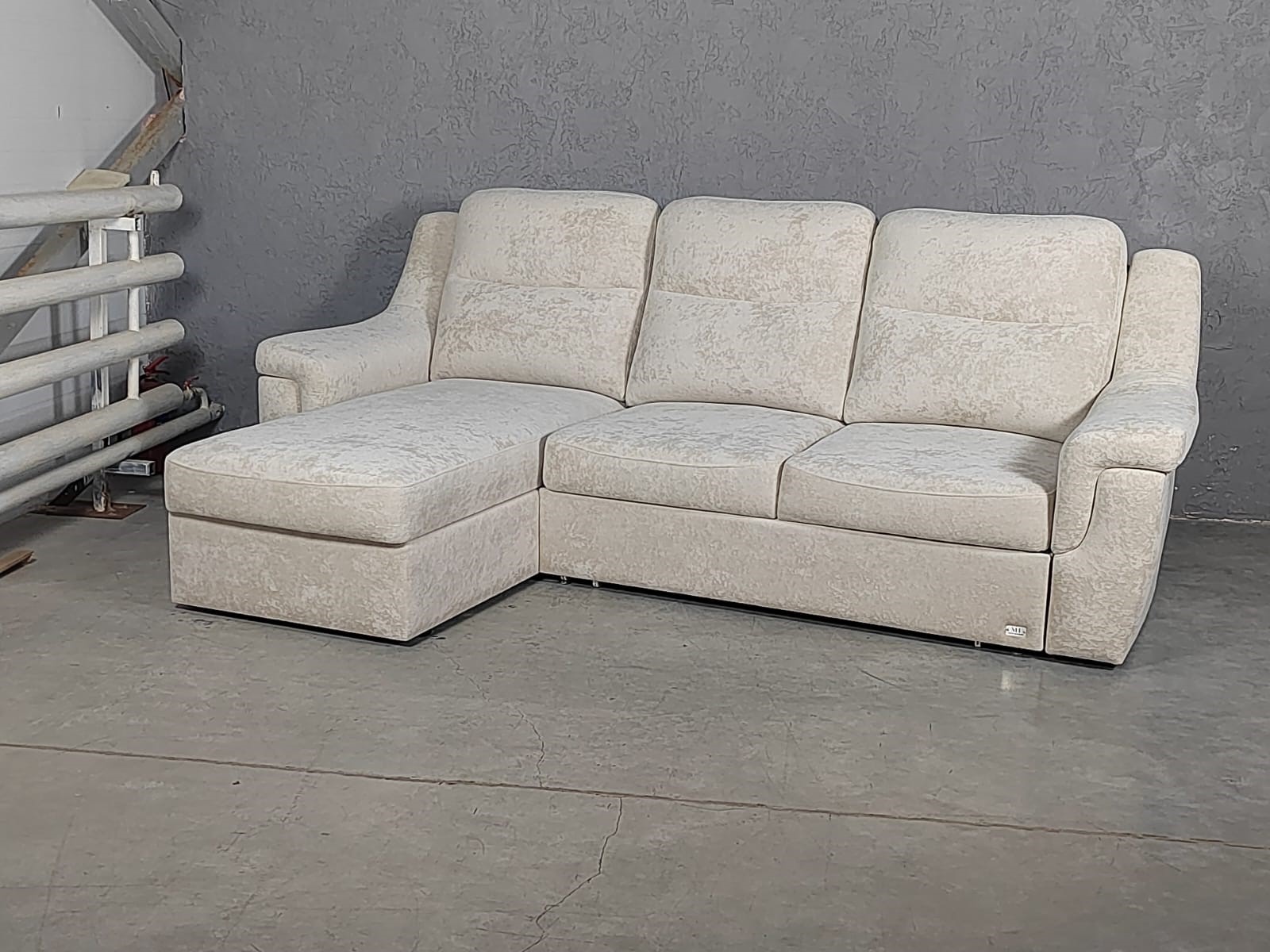 Удобный и простой механизм трансформации. Модель в светлой обивке со стяжкой.