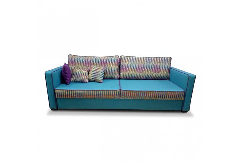 Диван «Валенсия Лилла» выполнен в приятном голубом цвете с пестрым узором подушек спинки и сиденья. Диван может раскладываться в удобное спальное место. Тип и цвет ткани могут быть выбраны индивидуально.