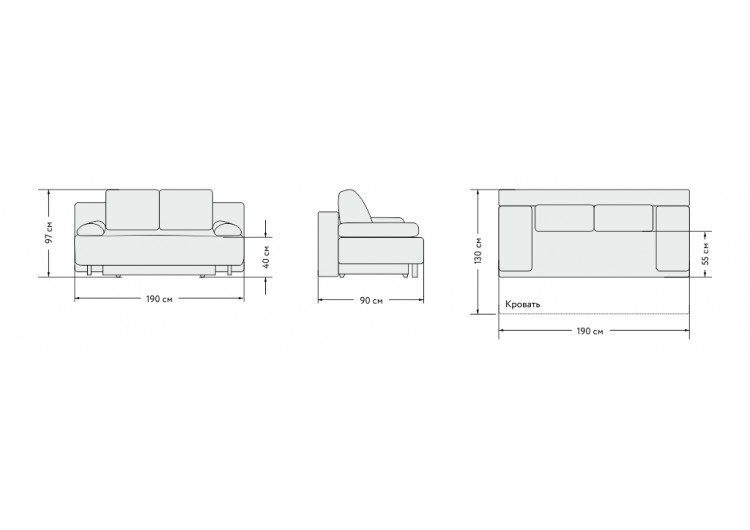 Габариты (ДхШхВ): 283х185х88 см. Механизм трансформации: «Еврокнижка»