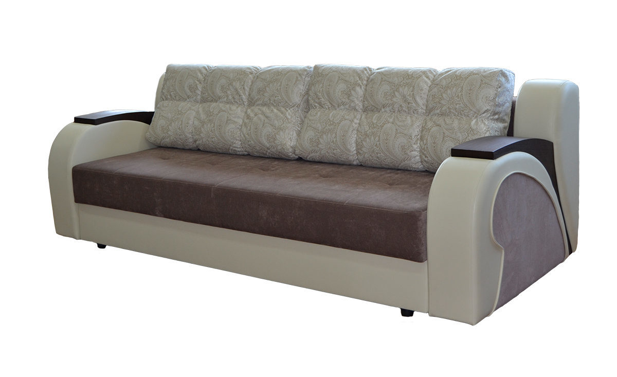 Сочетание рыже-оранжевого и белого цвета придают дивану необычайно-легкий вид. Для удобства и практичности боковушки дивана «Венеция» обрамлены жесткими подлокотниками. При необходимости диван трансформируется в просторное спальное место.