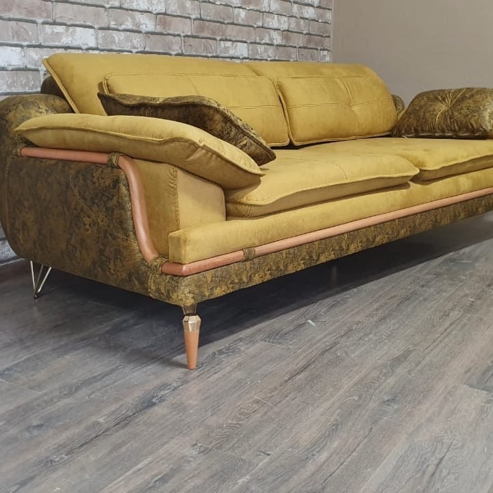 Удобный и функциональный диван светло-коричневого цвета.