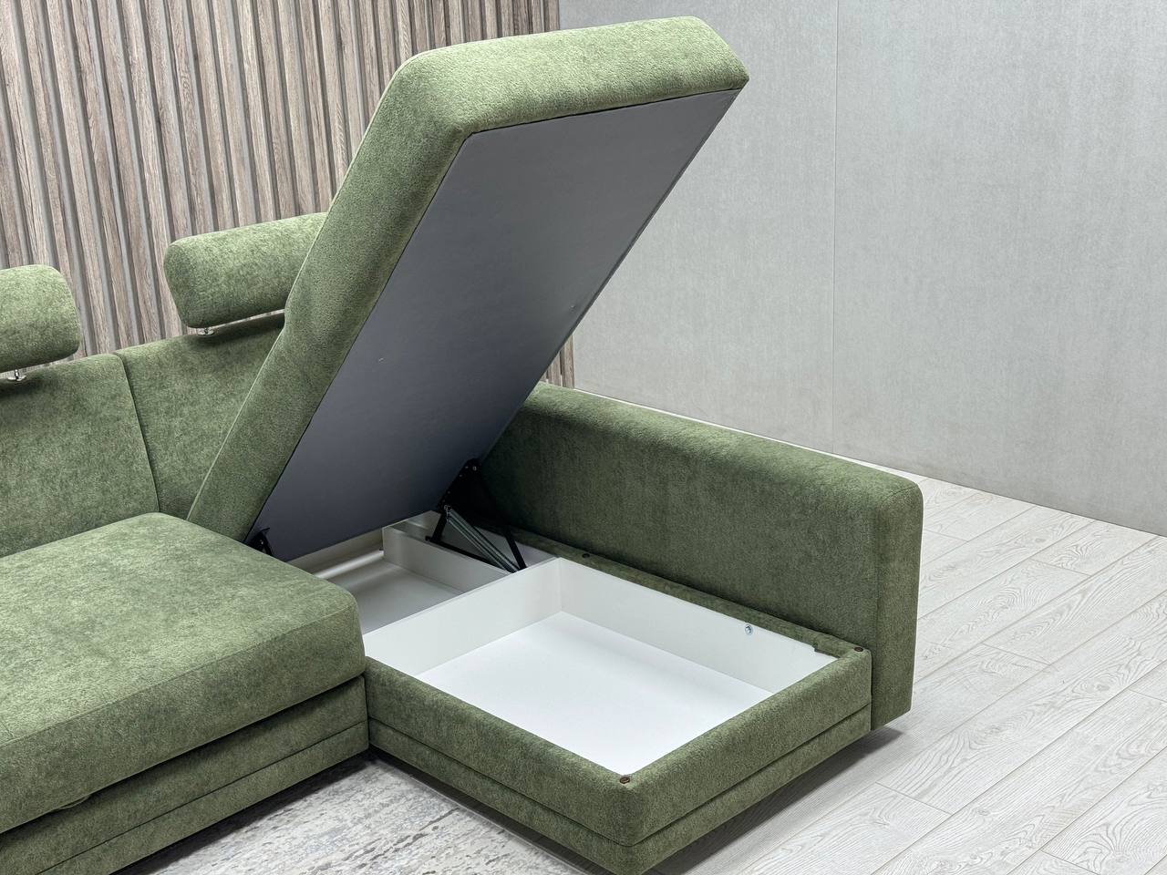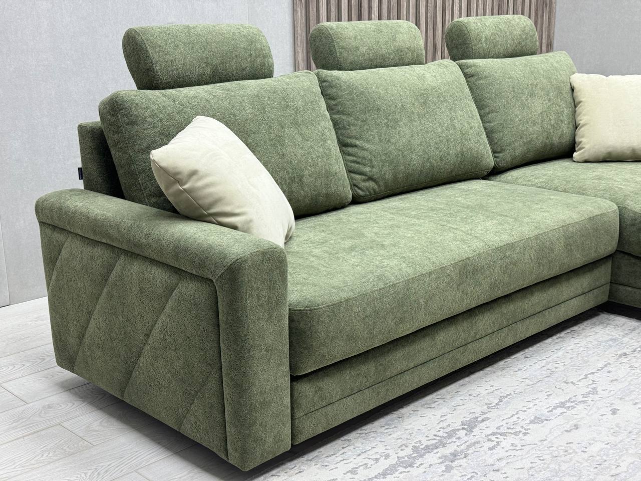 Увеличенное спальное место (1630 мм), быстро съемные подголовники, дополнительный просвет под диваном. В зависимости от необходимости покупателя – высота опорных ножек может быть 7 см или 10 см, соответственно этому механизм раскладывания дельфин изготавливается на НПБ или на ППУ и царга выполняется в двух вариантах — разделенный на 2 части (НПБ-7 см) и сплошной (ППУ-10 см).