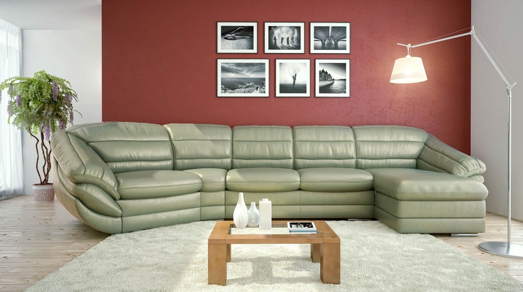 Диван «Верона» угловой с оттоманкой из натуральной кожи