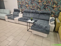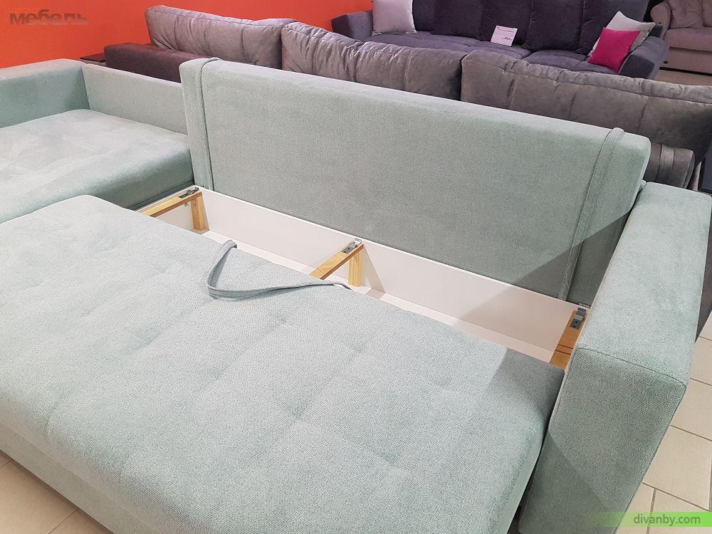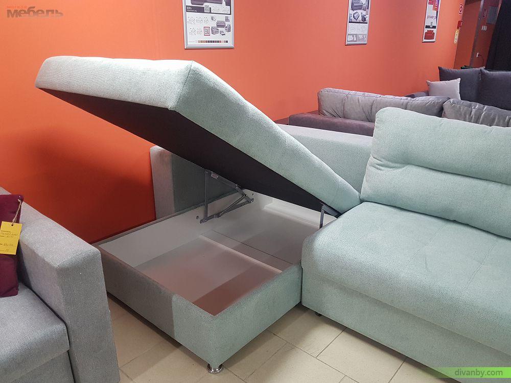Ящики в подлокотниках и столик. Настил: ортопедические латы + ППУ.