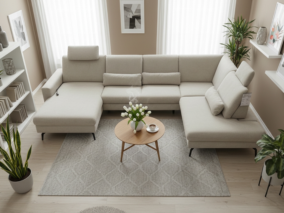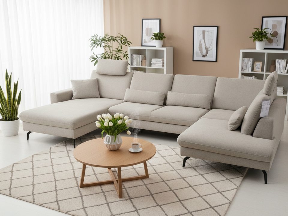 Модульный диван с индивидуальной конфигурацией для гибкой планировки.
