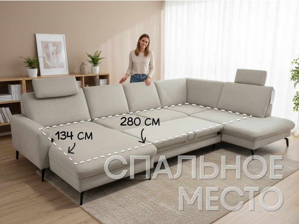 Тип дивана: П-образный.