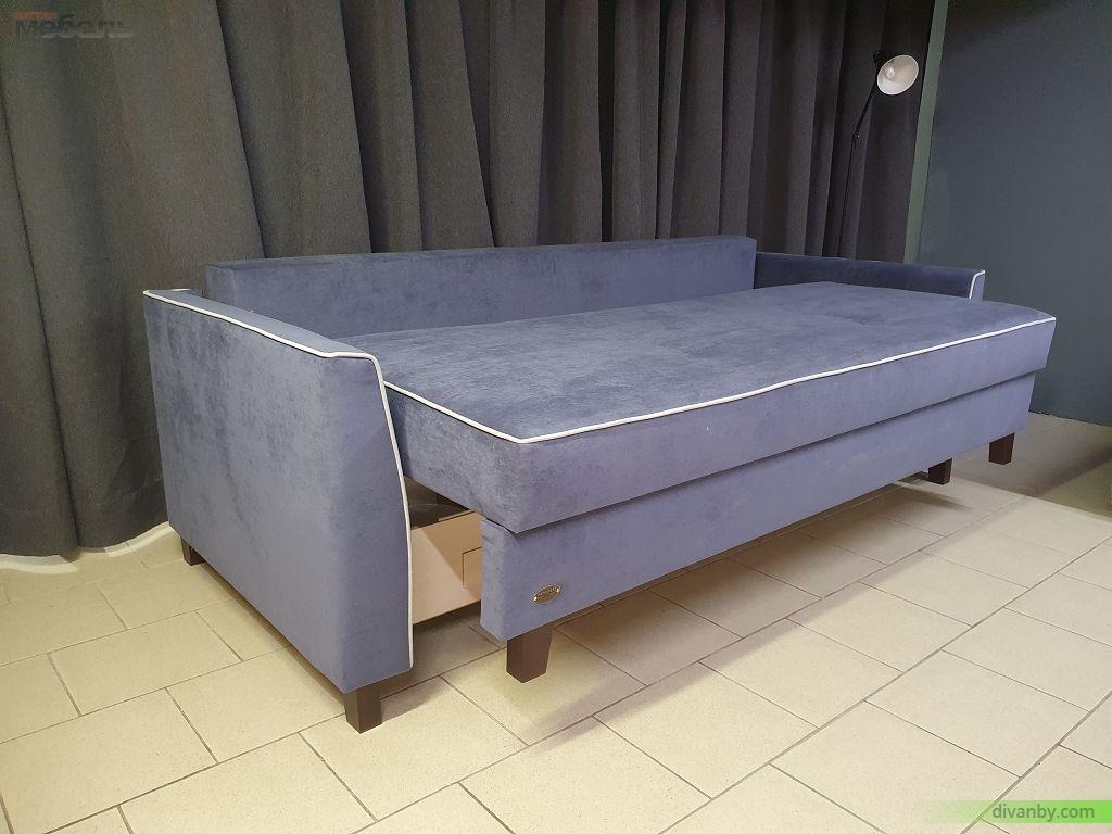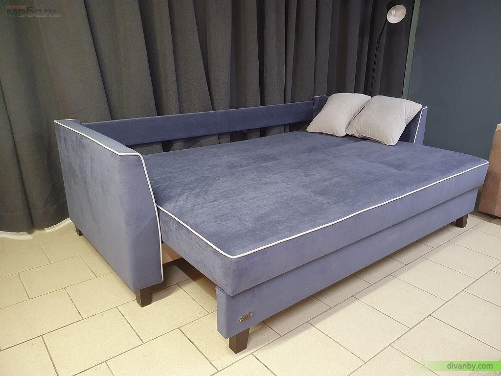 Наличие ящика для белья. Тонкие подлокотники. Удобный механизм трансформации.