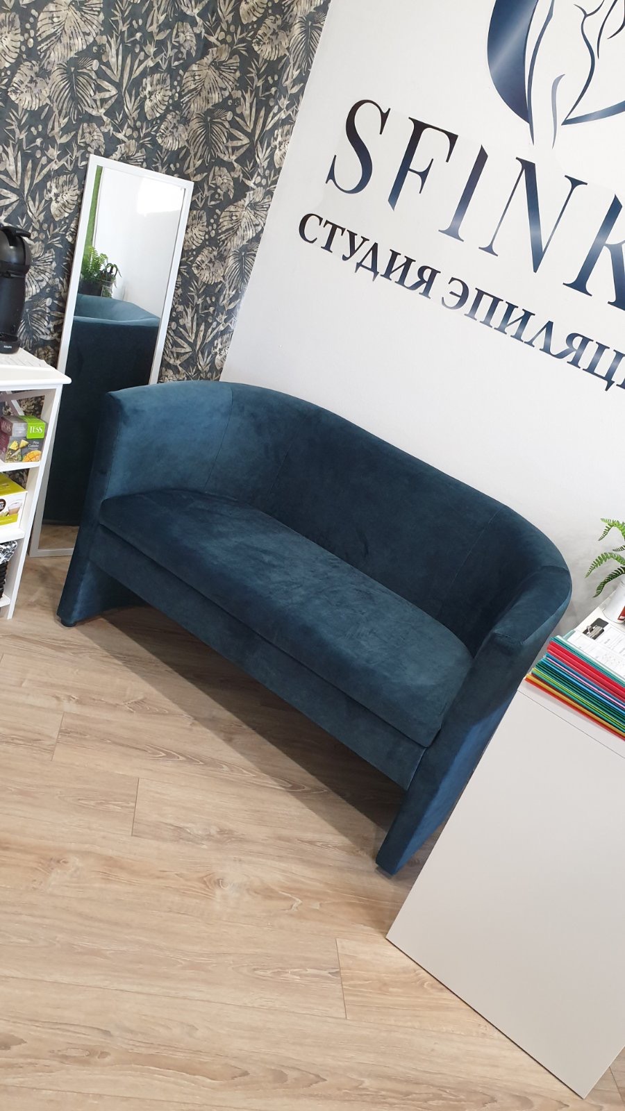 Диван в салоне красоты выполнен из искусственной кожи, декорирован стразами.