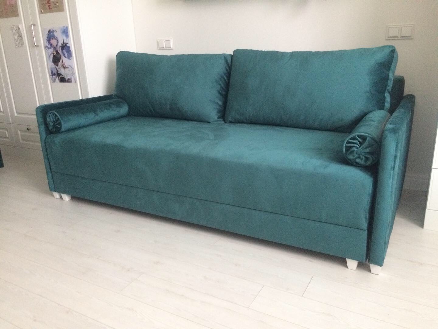 Декорирован стяжкой и стразами. Спинка-подушки. Удобное спальное место.
