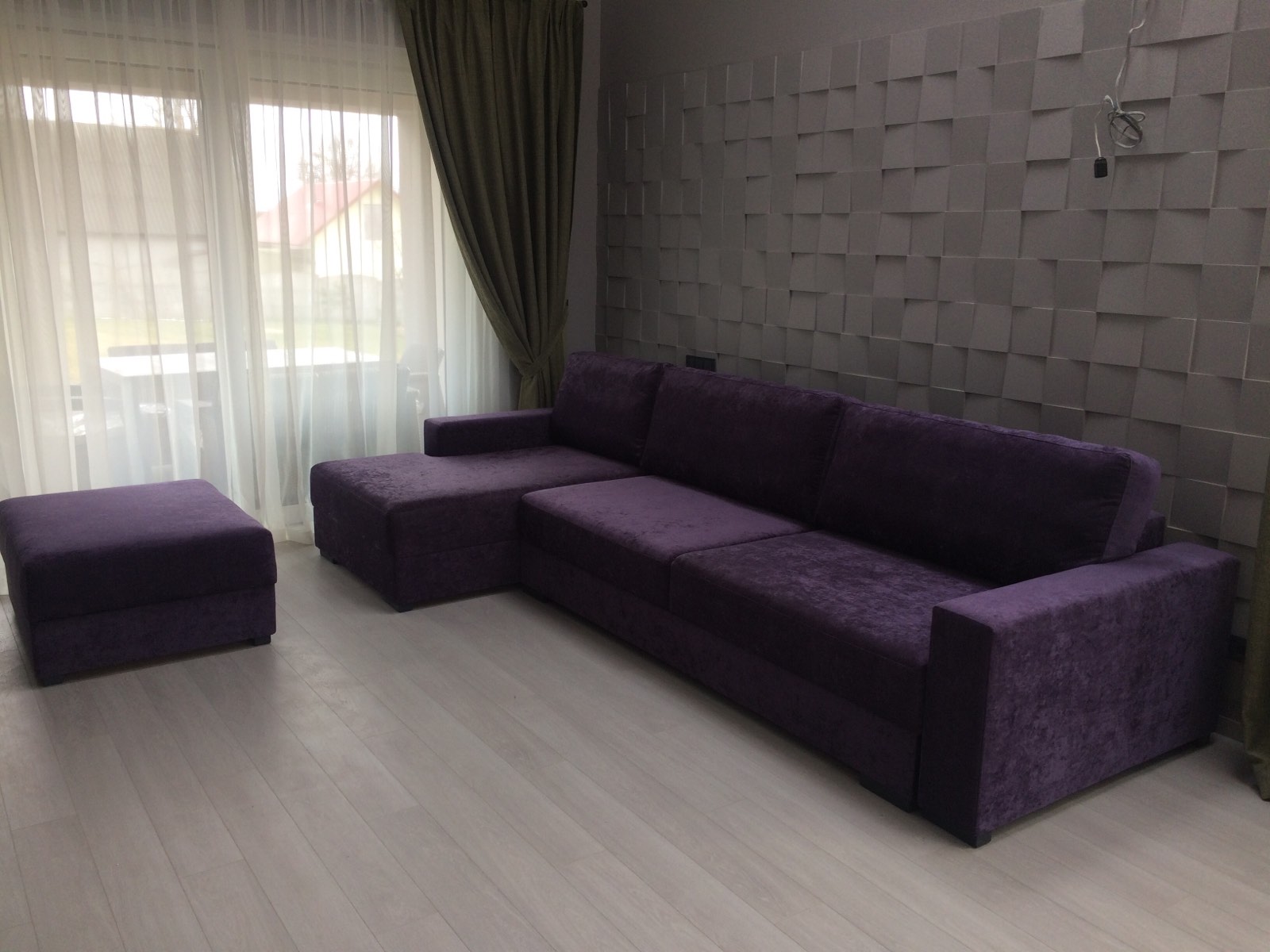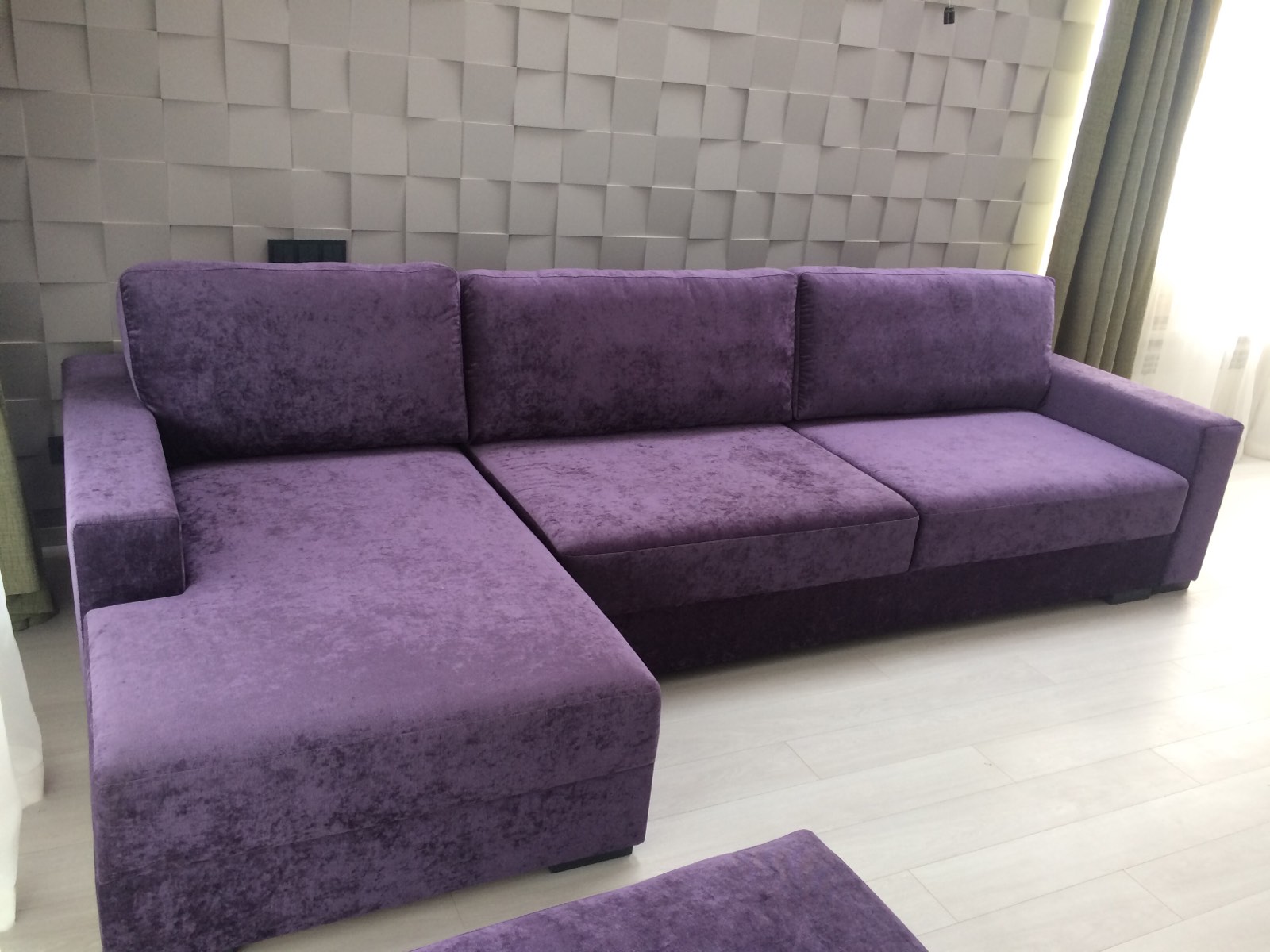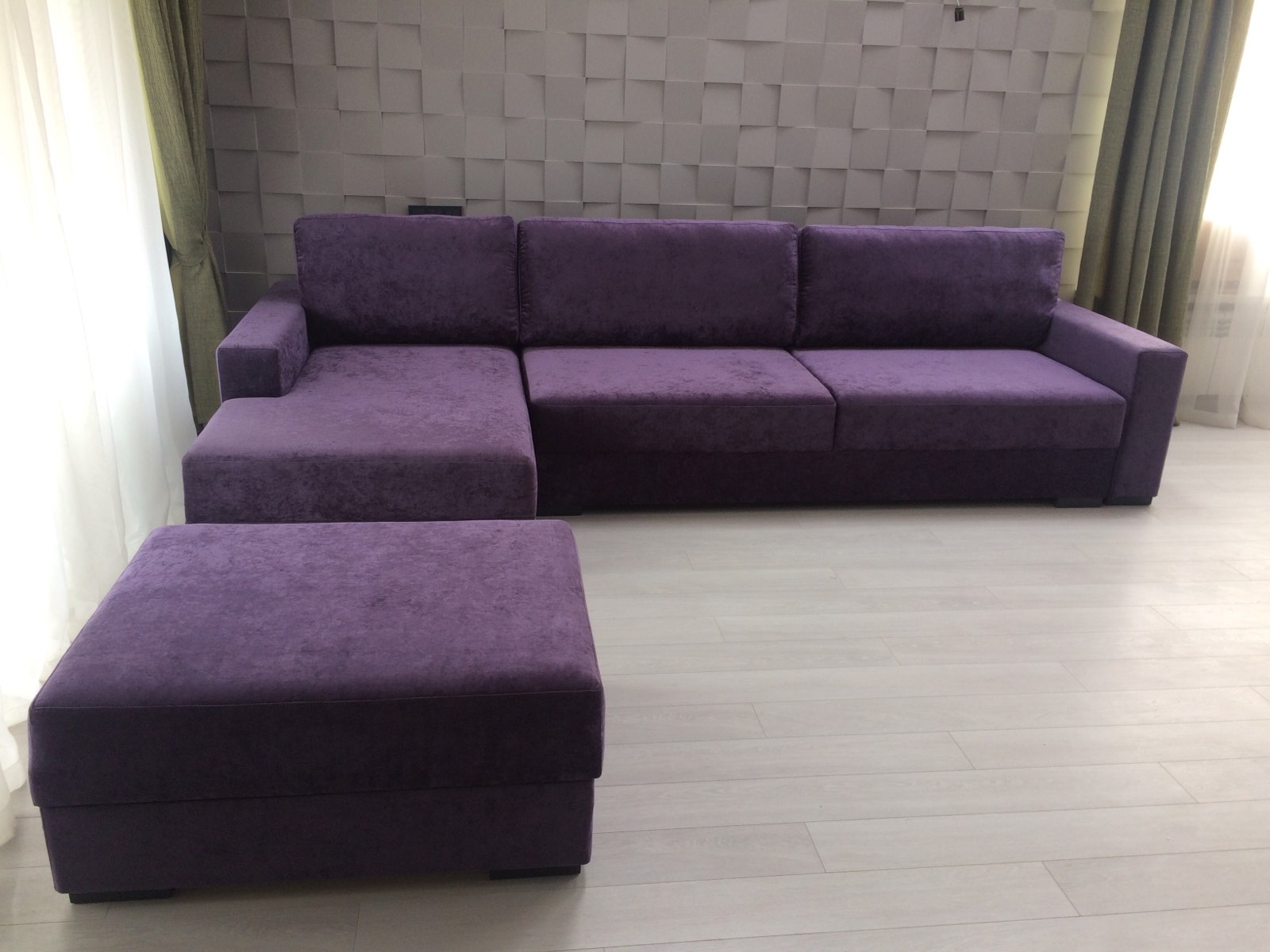 Фиолетовый угловой диван с пуфом