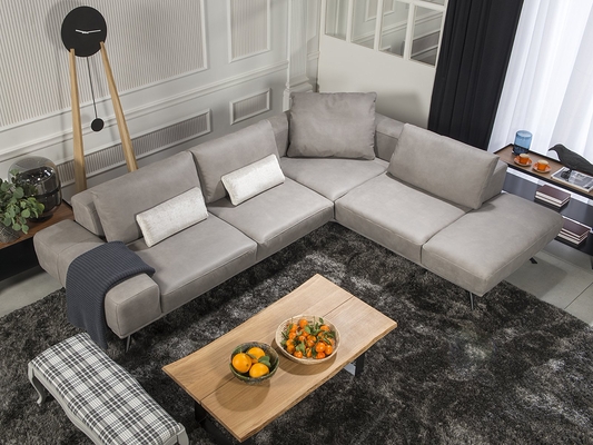Современный стиль с серой велюровой обивкой. Полки в боковинах.