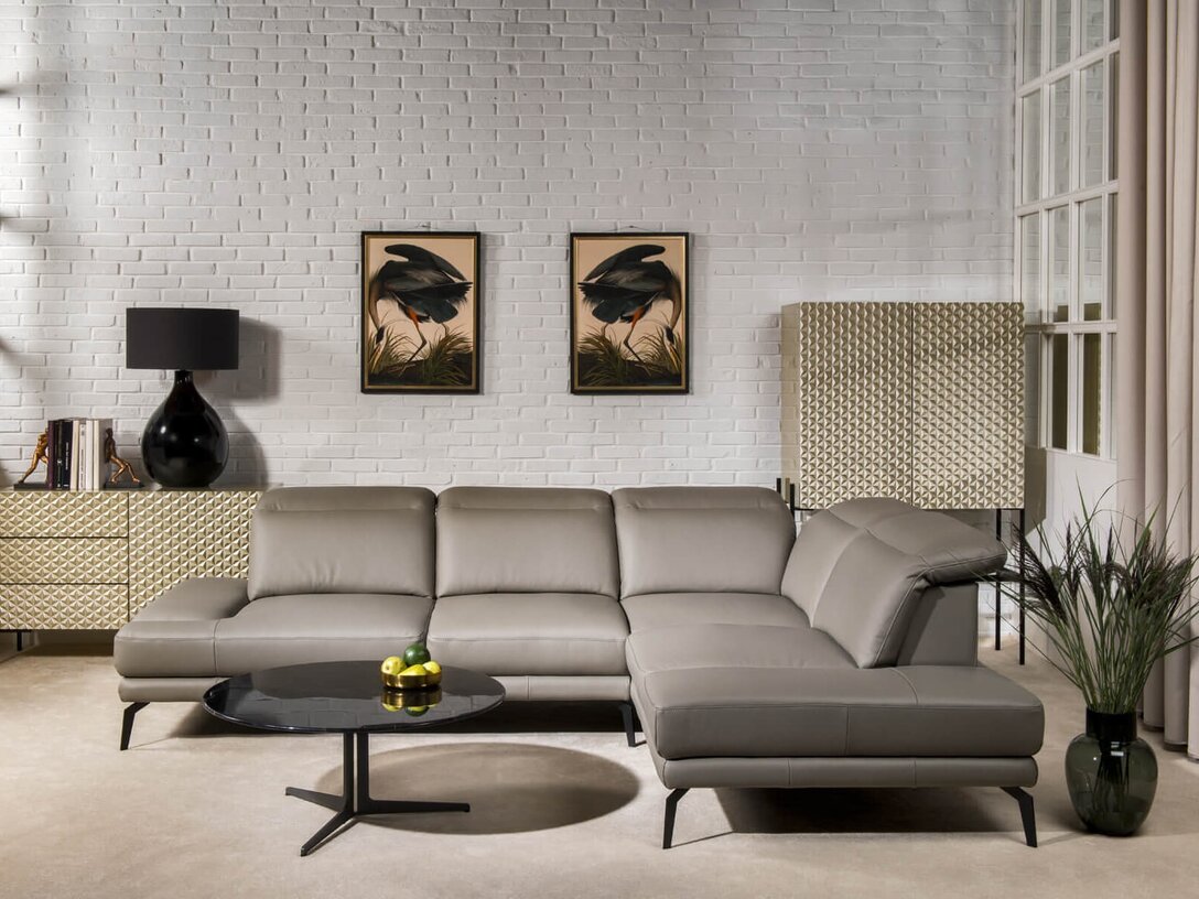 KLER TAMERLANO был разработан с учетом требований требовательных пользователей. Угловой диван включает в себя трехместный диван и удобный шезлонг с угловым элементом и двумя дополнительными спинками. Диван и шезлонг (кроме углового элемента) имеют ручную регулировку глубины сиденья с помощью подвижных спинок (перед-зад). Кроме того, и диван, и шезлонг имеют ручную регулировку подголовника, а диван имеет регулируемый подлокотник. В каждом варианте мебель опирается на металлические ножки, окрашенные порошковой краской черного цвета(дополнительная опция-выбор цвета).Обивка – кожа натуральная или ткань.