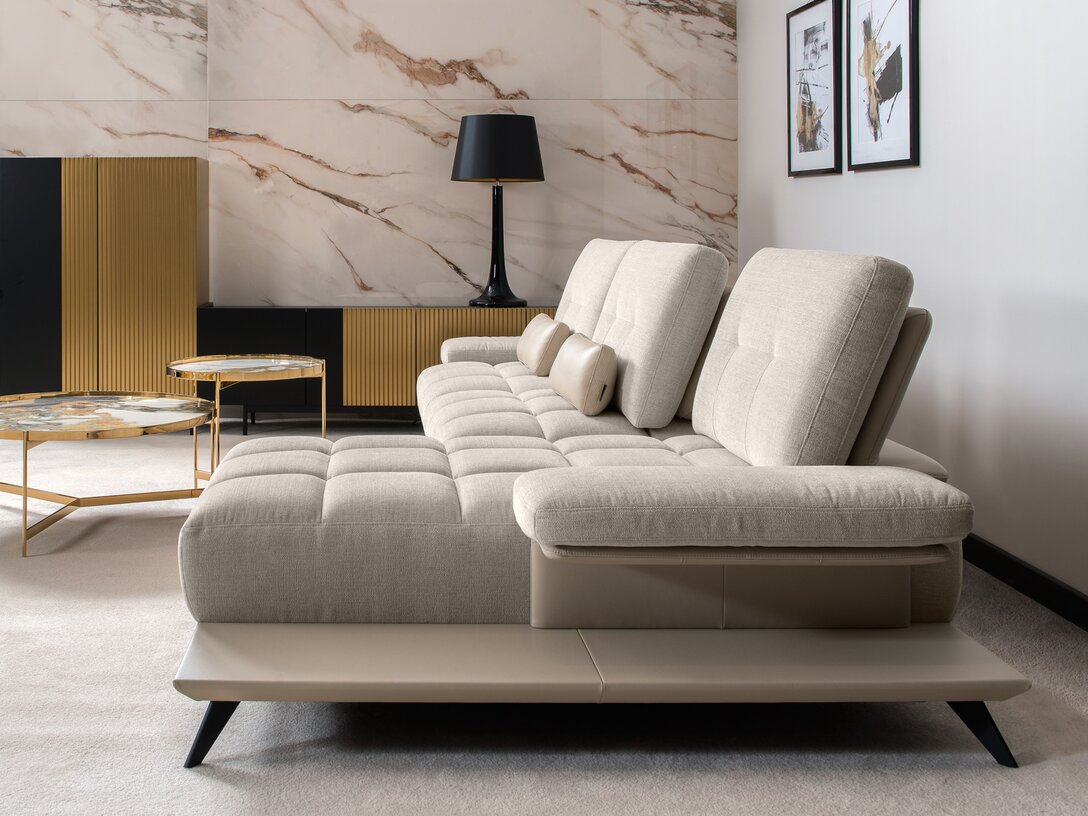 Мебель для отдыха KLER TRITONO создана для обеспечения максимально возможного уровня комфорта. диван имеет ручную регулировку глубины сиденья с помощью подвижных спинок (перед-зад), а под подлокотниками имеются функциональные полки. Модульная система. Прямые и угловые варианты диванов.Ножки металлические,возможность выбора цвета.Обивка кожа натуральная или ткань,а также сочетание кожи и ткани.Широкий спектр цветов и фактур.