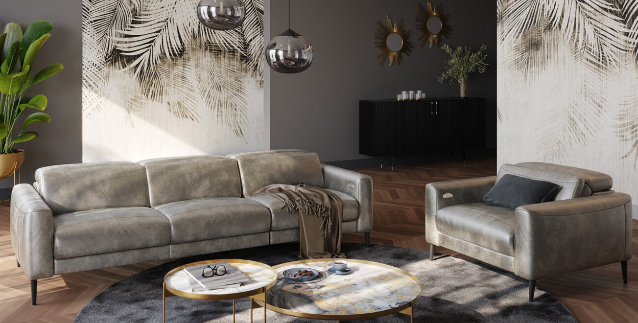 Элегантный современный гарнитур, предлагающий персонализацию через выбор из широкой палитры элитных кож и тканей для воплощения вашего уникального стиля.