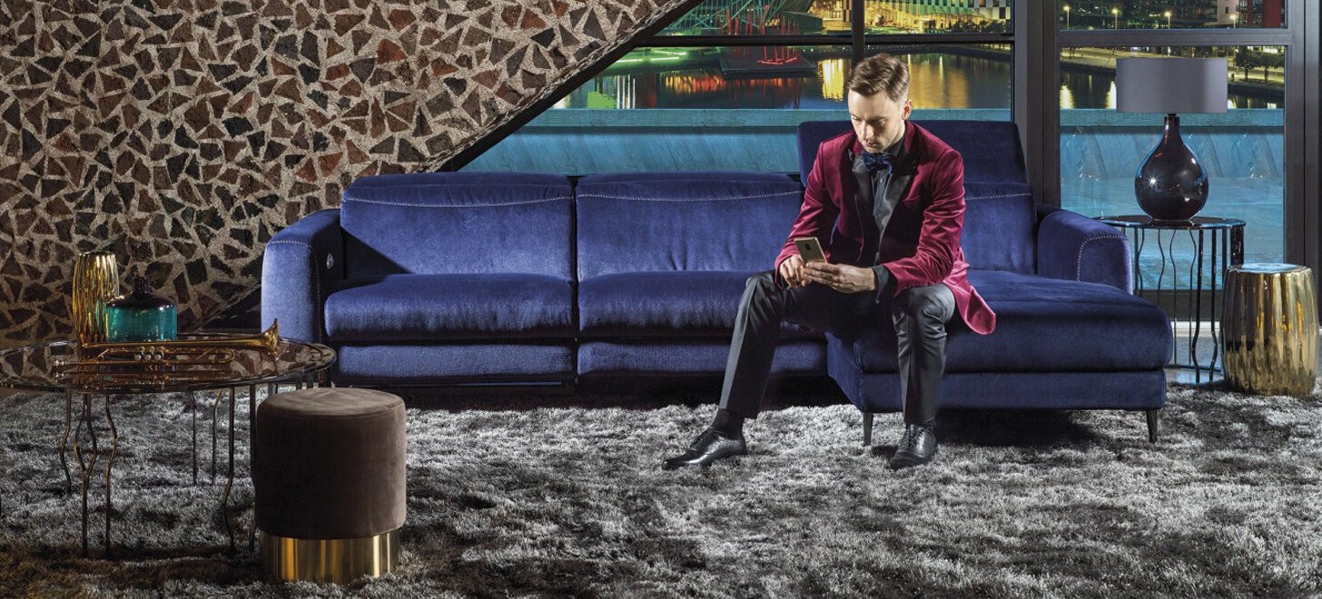 Комплект для отдыха, состоящий из 2-х и 3-х местных диванов и скамеечки для ног • Модули расположены в продольной или угловой конфигурации • Модуль с удлиненным сиденьем (шезлонг), позволяющий удобно выпрямить ноги • Модуль с сиденьем, венчающим угловой диван • Функция релаксации – независимый подъем подголовника, выдвижение из подставки для ног – электрически управляется двумя двигателями • Опция: механизмы релаксации на батарейках • USB-разъем на панели управления • Подголовник с регулируемым углом наклона • Чехол на выбор из широкого ассортимента кожи и тканей коллекции Kler • Металлические ножки с графитово–хромированным покрытием (опция: порошковое покрытие в 6 цветах на выбор от)