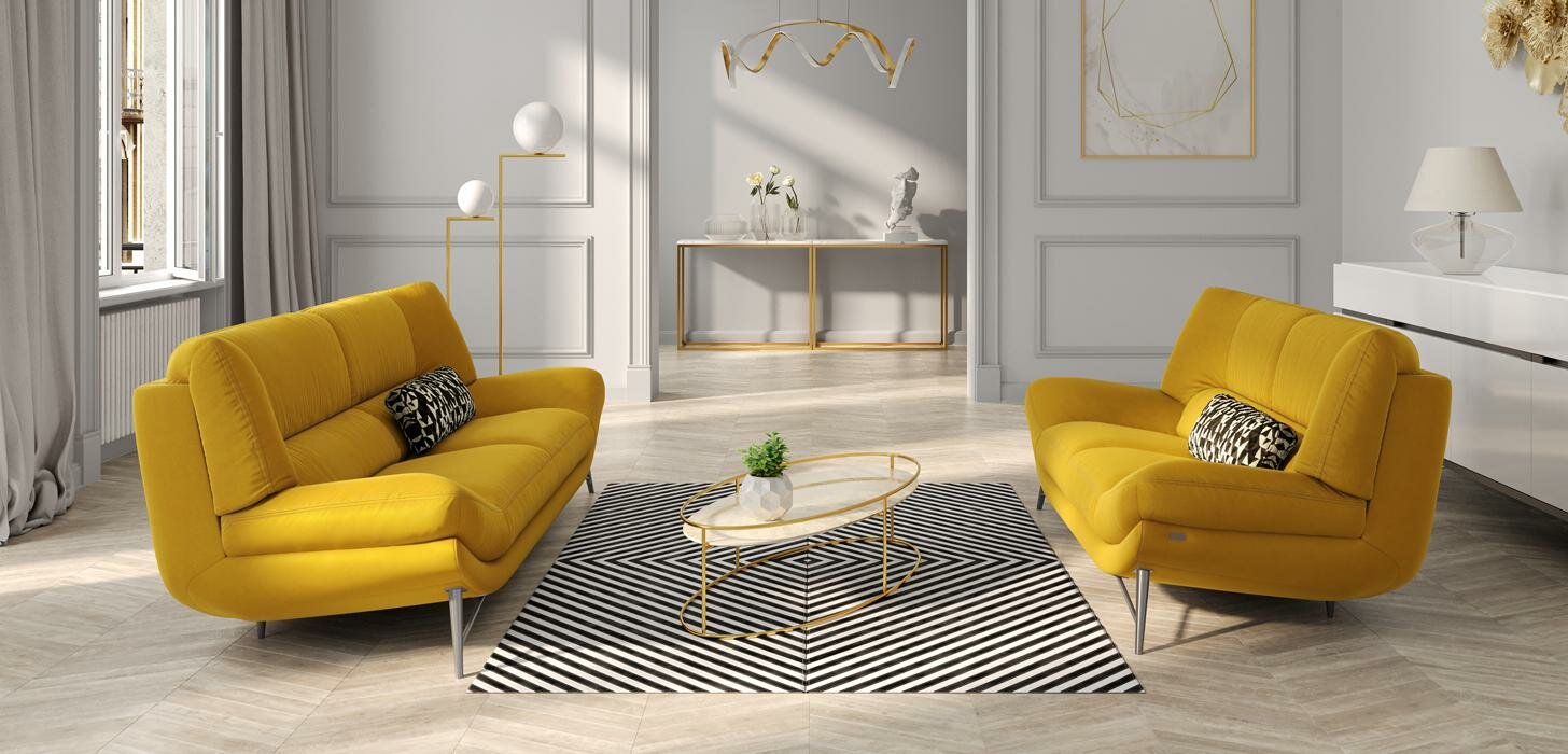 Комплект мебели для гостиной, включающий 2-х и 3-х местные диваны - Модули, соединяемые в продольном или угловом расположении - Модуль с удлиненным сиденьем (шезлонг), позволяющий удобно выпрямить ноги - Модуль с сиденьем, венчающим угол (терминал) - Обивка на выбор из широкого ассортимента кожи и тканей коллекции Kler - Металл - хром (опция: порошковая покраска ножек в 6 цветов по вашему выбору).